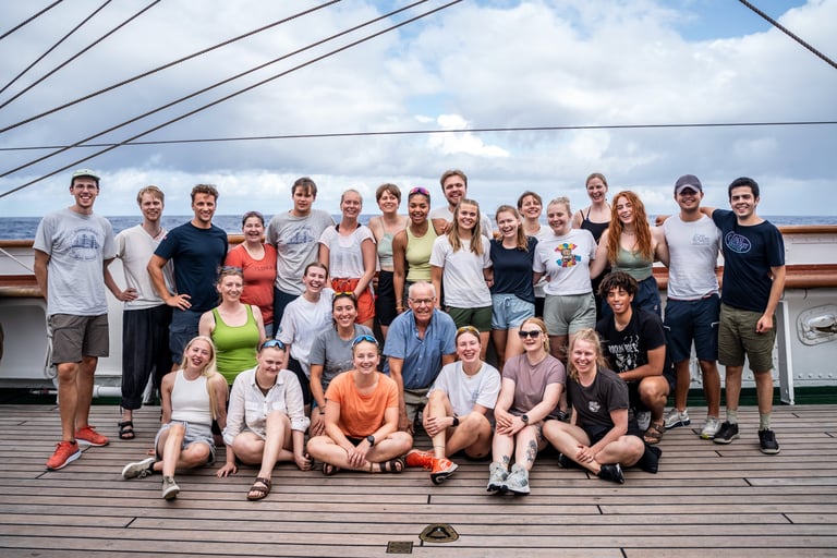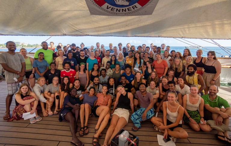 Ombord var vi 86 studenter fordelt på 15 utdanningsinstitusjoner, 13 nasjonaliteter og 62 ulike studieprogram, hvor jeg representerte alene for visuell kommunikasjon. Formålet var å lære mer om bærekraft og hav, men jeg fikk en langt dypere mening med tematikken, på grunn av det unike læringsutbyttet og menneskene som var en del av reisen over Stillehavet.
