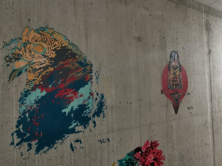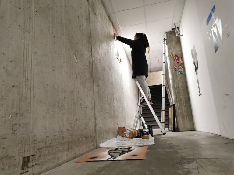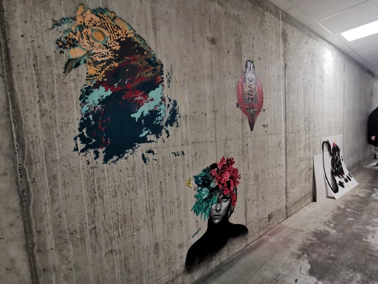 This project came about based on a commission that could not be done. It was during the covid-pandemic with all it’s does and don’ts. So what we managed, based on common interests, were a new project on commission and a stencil festival in a corridor at Peppes Pizza at Nesttun.